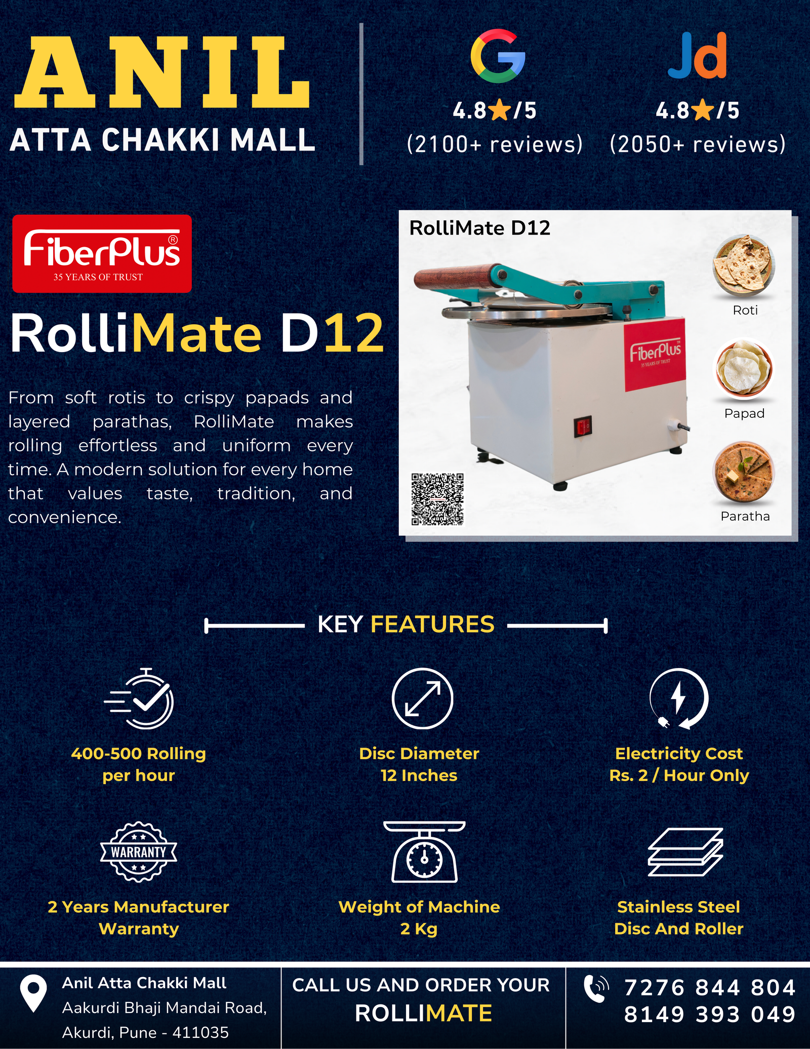 The Multipurpose Rolling Machine helps you prepare perfectly round papads, bhakaris, chapatis, and khakras with consistent thickness every time. Whether for home use or small businesses, it delivers professional results in minutes.